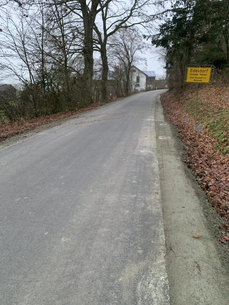 Die Gemeindeverbindungsstraße zwischen Edeldorf und Weiden ist nach Abschluss der Bauarbeiten wieder uneingeschränkt befahrbar. Mit der Maßnahme wurde die Verkehrssicherheit deutlich verbessert.