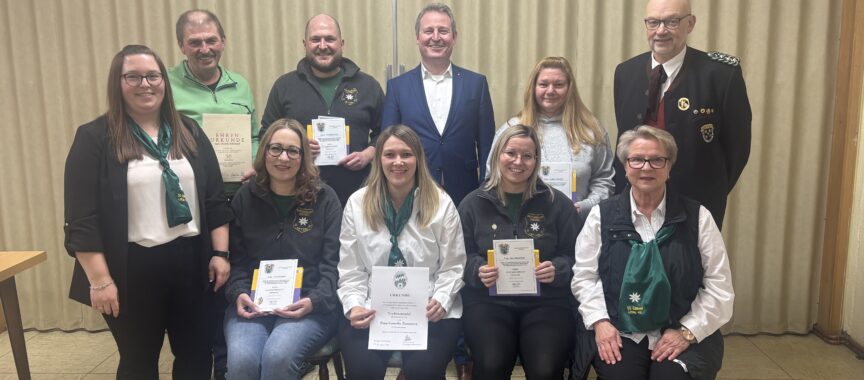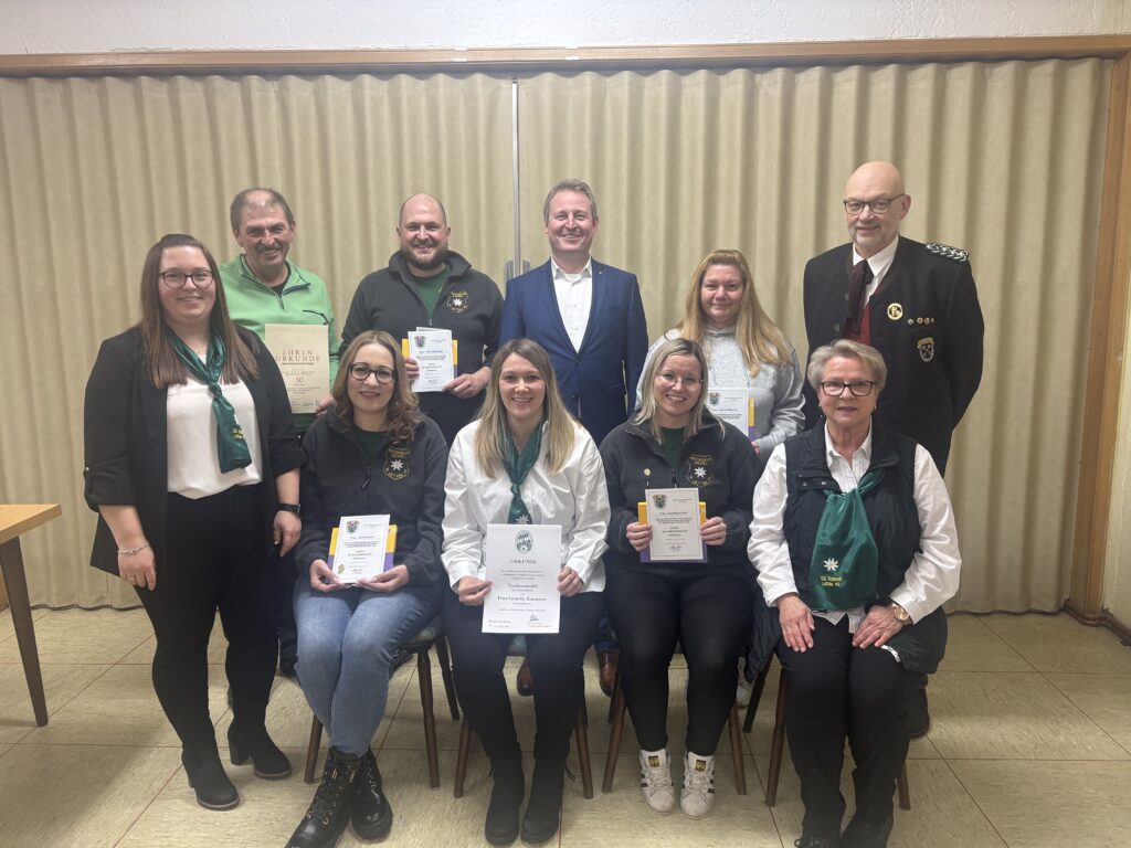 Ehrungen für besondere Verdienste erhielten Julia Russell, Andrea Bäumler, Vera Marschalt und Nico Marschalt mit der „Nadel in Verbundenheit“ des ONG sowie Cornelia Zimmerer mit der Auszeichnung „In Anerkennung“ des BSSB.