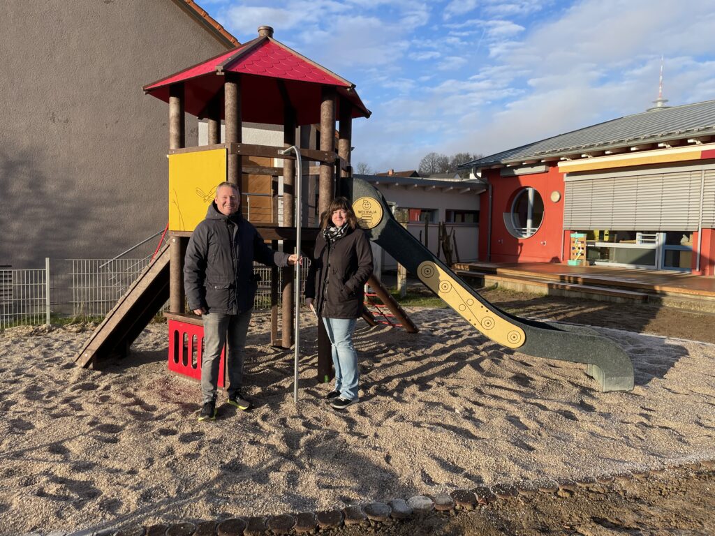Nach Abschluss der Arbeiten erfolgte Anfang Januar 2026 die offizielle Freigabe der neuen Spielgeräte. Bürgermeister Johannes Kett übergab den erneuerten Spielplatz symbolisch an die Kindergartenleitung Verena Gawel des Johanniter-Kindergartens.