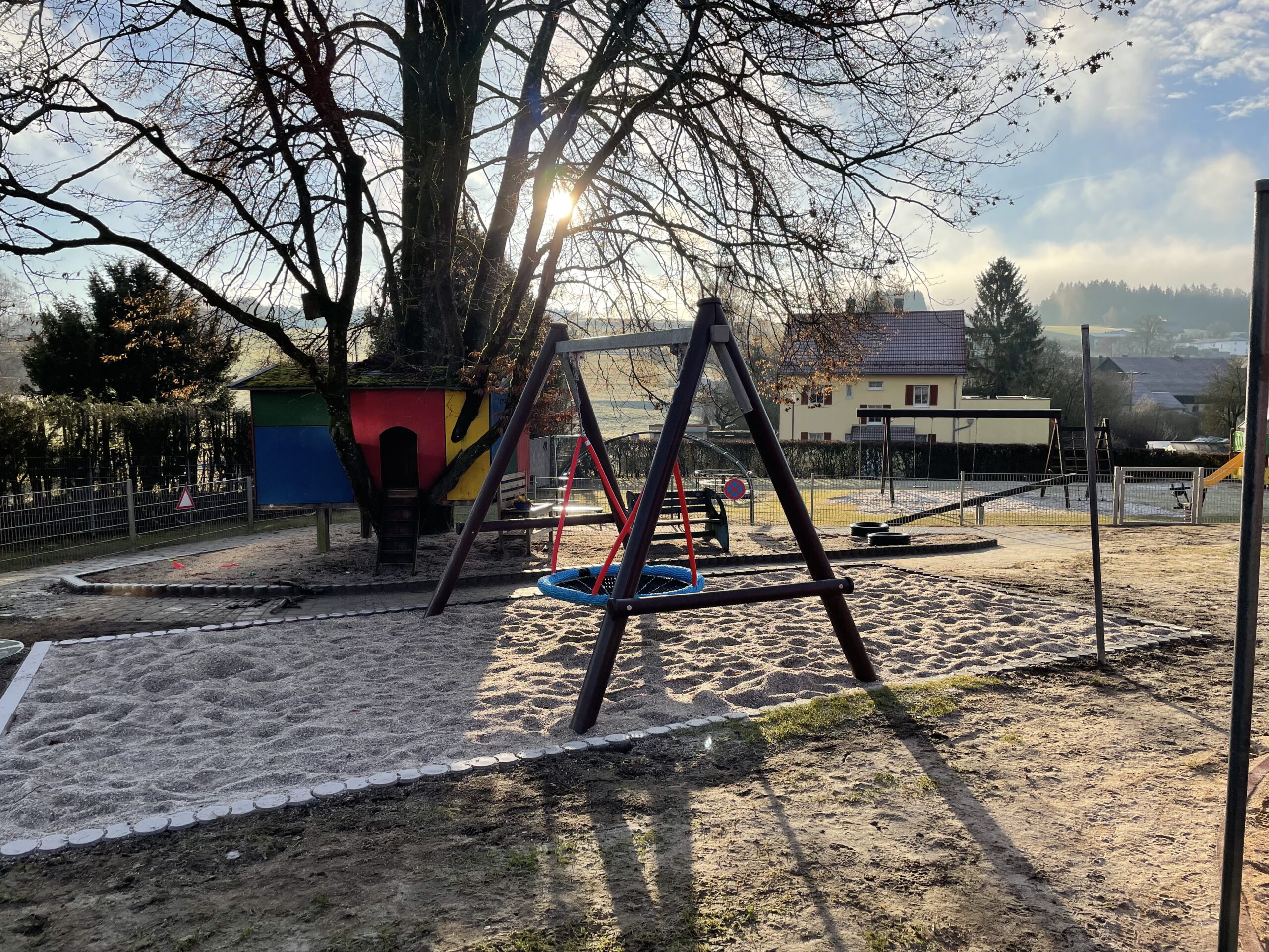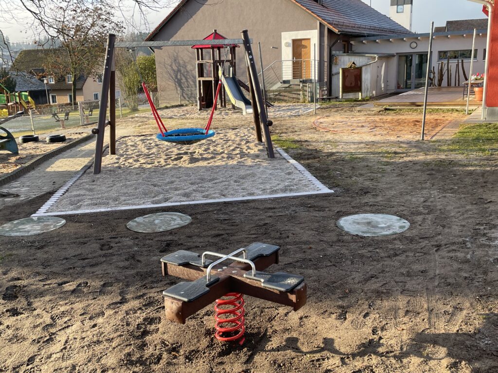 Die bisherige Schaukel, der Rutschturm sowie die Wippe mussten altersbedingt erneuert werden und wurden durch moderne, altersgerechte Spielgeräte ersetzt.