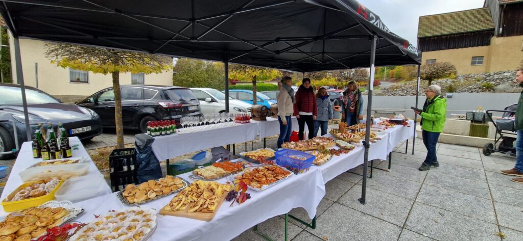 Im Anschluss gab es auf dem Kirchplatz einen Umtrunk, organisiert vom katholischen Frauenbund Letzau um Team-Sprecherin Margita Sammel. Verschiedene Snacks und Fingerfood sowie verschiedene Getränke luden zu einer gemütlichen Runde ein – dazu sorgte die Original Letzauer Blasmusik unter Leitung von Franz-Josef Völkl für die musikalische Umrahmung.
